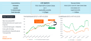 O ETF B5P211, da Itaú Asset, investe em NTN-Bs com vencimento de até cinco anos, oferecendo uma alternativa mais equilibrada entre risco e retorno. Na comparação com a NTN-B 2030, por exemplo, o B5P211 apresentou desempenho superior nos últimos anos — com menor volatilidade.