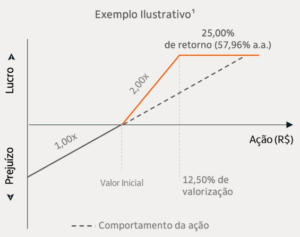 A Booster funciona como um “impulsionador de rentabilidade”, sendo realizado via mercado de Opções, que permite que o investidor possa “surfar” não somente a alta das Ações, mas também uma valorização desses derivativos, resultando em possíveis ganhos mais expressivos.